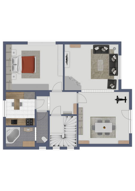 Im Erdgeschoss erwartet Sie ein klassischer Grundriss mit einem gemütlichen Wohnzimmer, das Zugang zur Terrasse und zum Garten bietet, einem großzügigen Schlafzimmer sowie einer separaten Küche.
